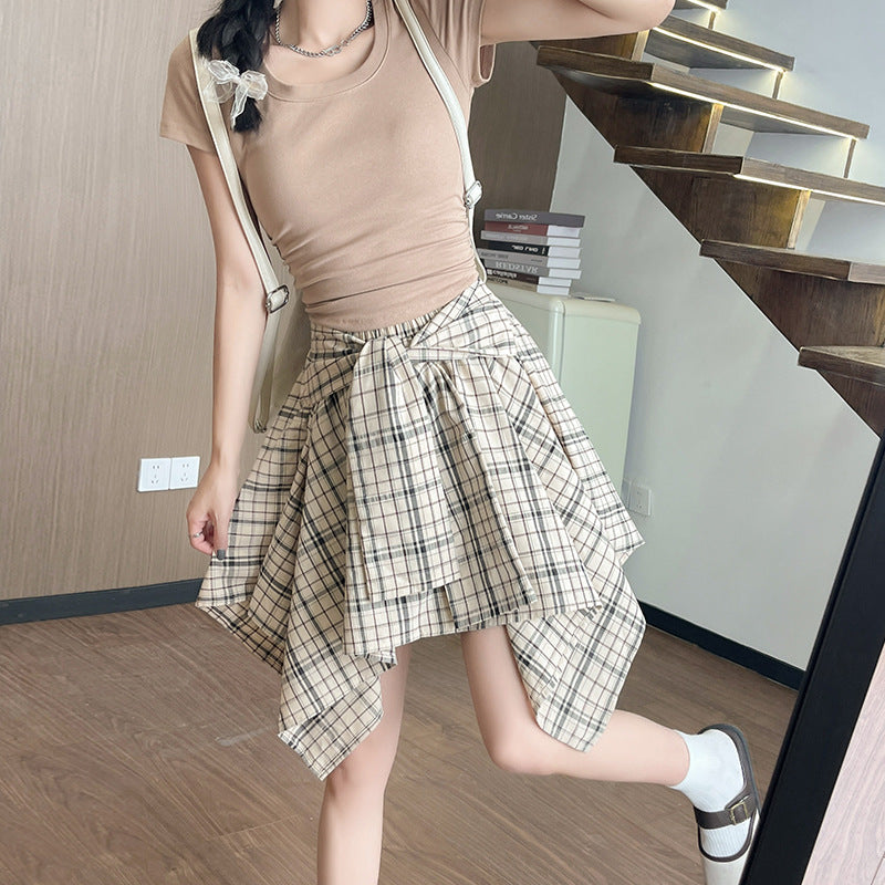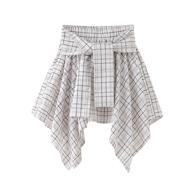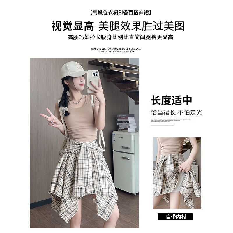 Irregular plaid skirt women's summer new anti-exposure retro hip skirt a-line slim shirt skirt