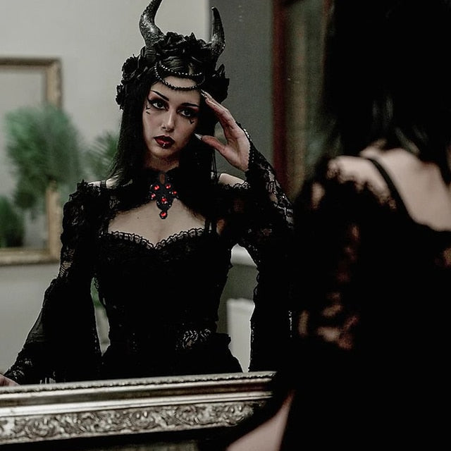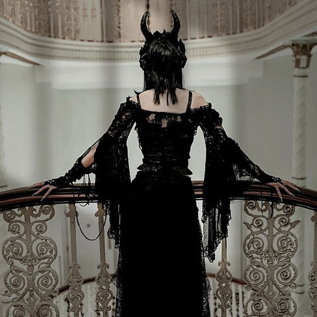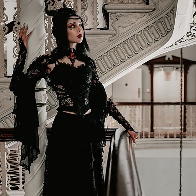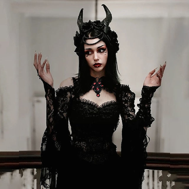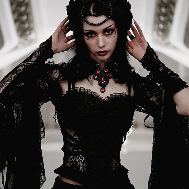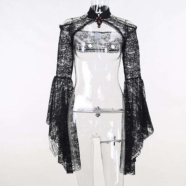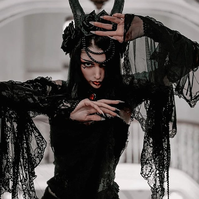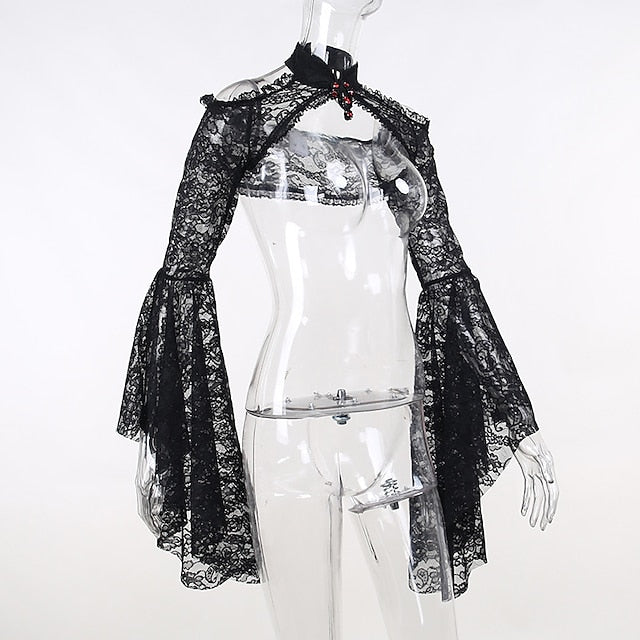 Gender:Women's.Types:Shawls.Masquerade.Characters:Goth Girl.Material:Lace.Style:Year 2000.Y2K.Sexy.Gothic Lolita.Look After Me:Washable.Hand wash.Machine wash.Sleeve Length (cm):S:51.5;M:52.5;L:53.5.Age Group:Adults'.Occasion:Party / Evening.Holiday:Masquerade.What's in the box:Shawl.
