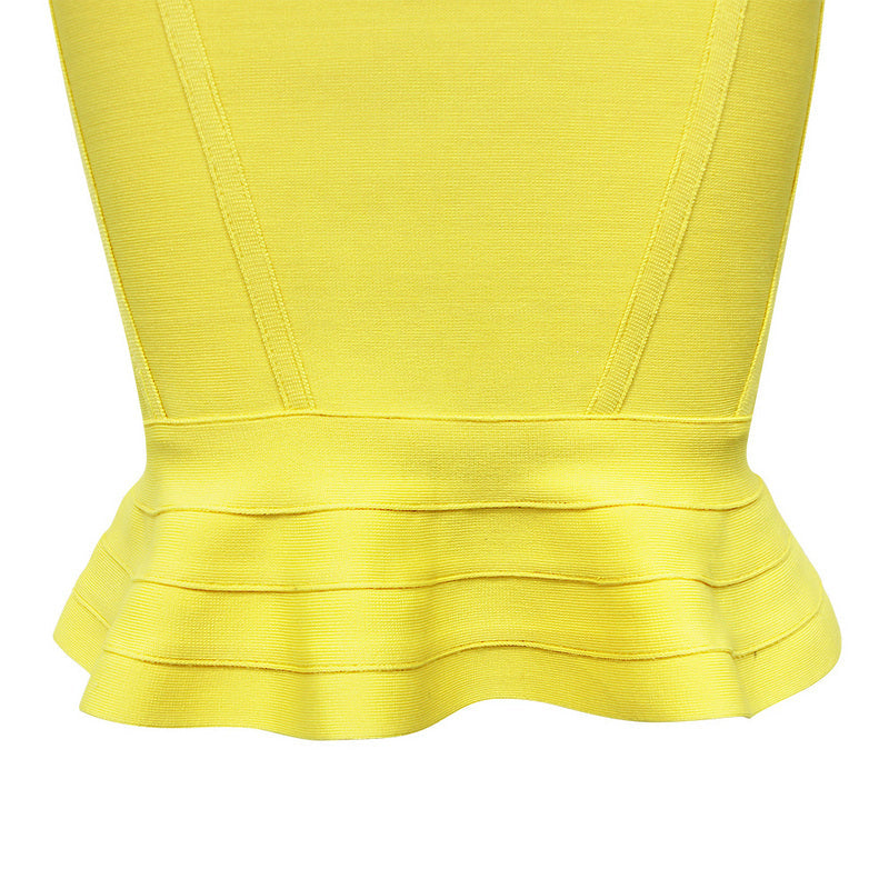 Koazu High Quality Pink Yellow Knee Length Rayon Bandage Dress Evening Party Elegant Dress
