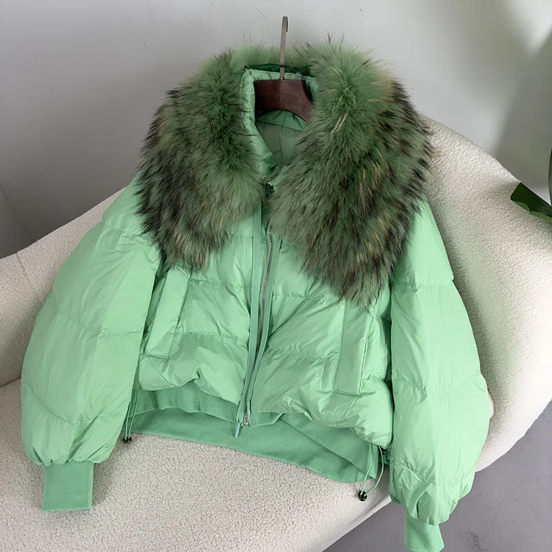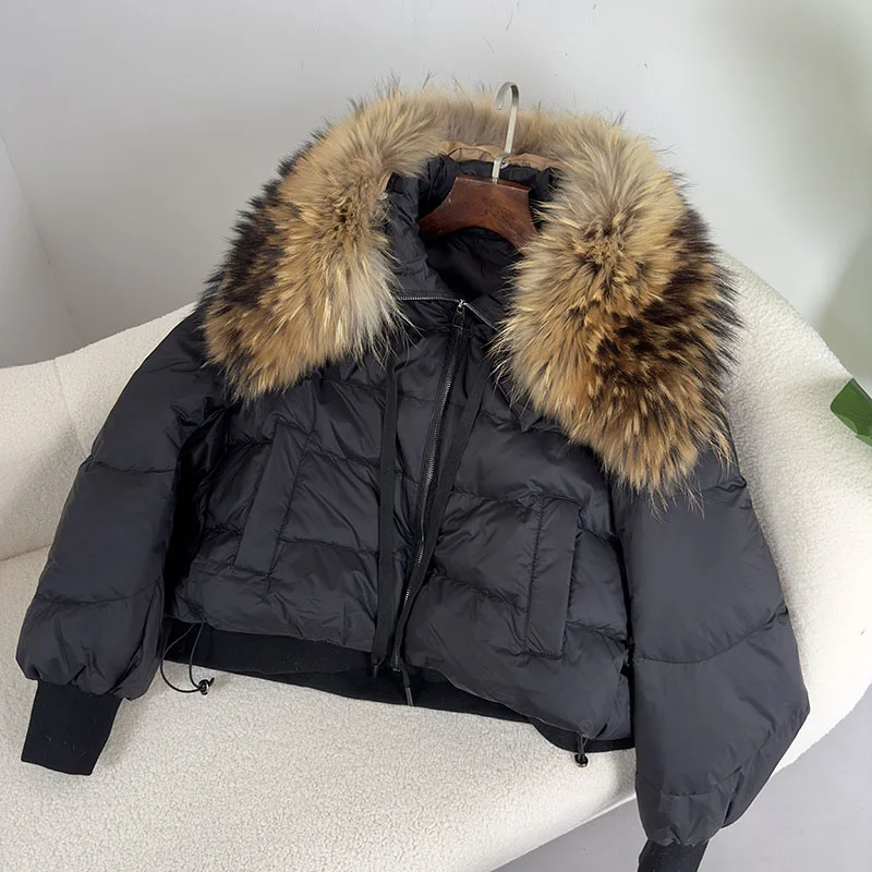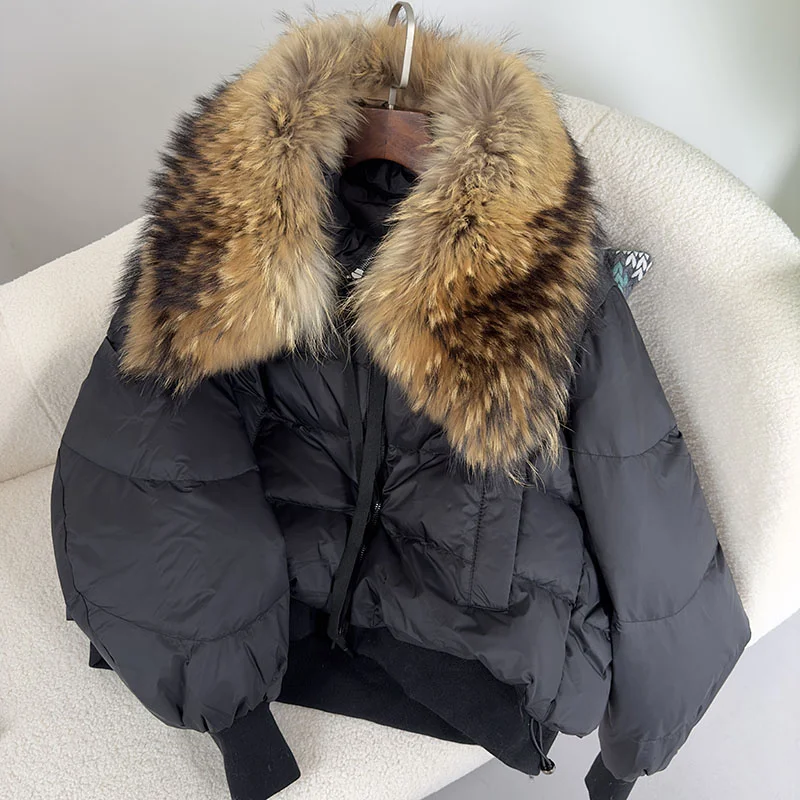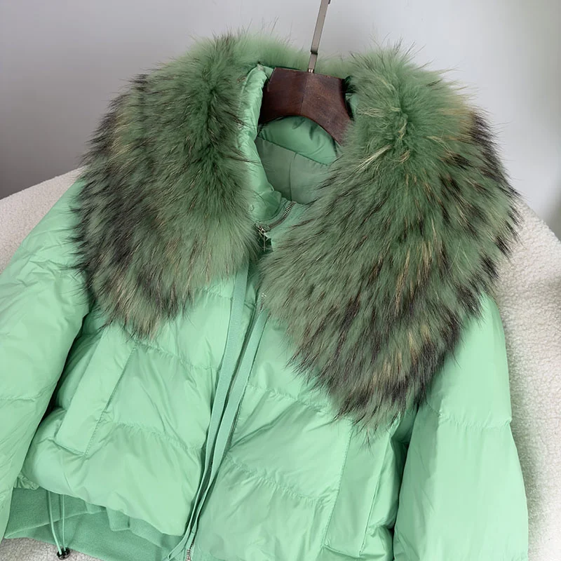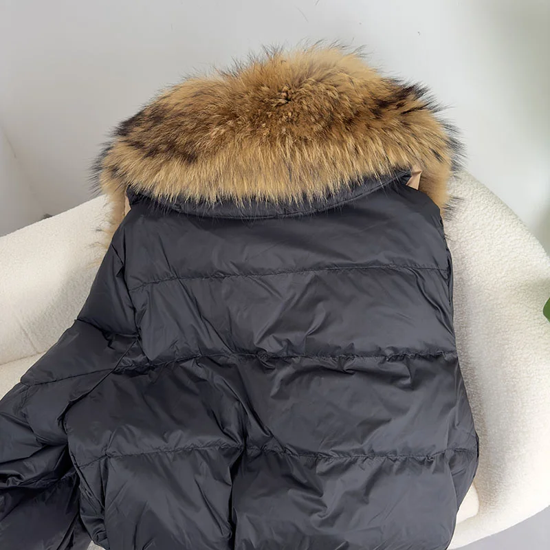 Oversized raccoon fur collar. collar length: 88cm. collar width: 25cm